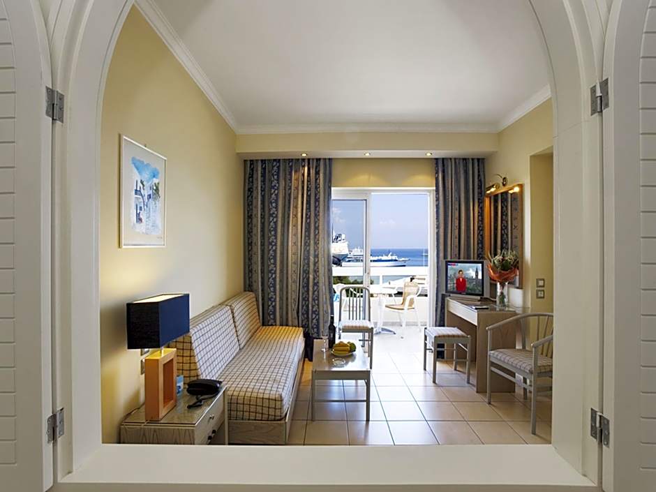 This air-conditioned apartment opens to a private balcony overlooking the Old Town or the pool. It has a spacious living room and a separate, fully equipped kitchen.